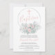A modern and elegant hand painted spring summer soft pastel pink, grey and turquoise green floral watercolor bouquet baptism with circle and elegant script calligraphy with silver sparkle confetti glitter and silver foil frame.