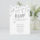 Wedding RSVP cards with silver glitter confetti pattern. Available in many matching wedding products. (please note glitter effect is print only.)