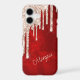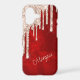 This glamorous personalized phone case has a red gradient background that almost glows. At the top are sparkly silver and pink red tones of glitter drips. Your name is in script below. You may change the font, if you'd like, by customizing.