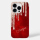 Silver Crimson Glitter Drips on Red Monogram Case-Mate iPhone Case