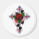 Silver Cross with a Red Rose Magnet