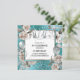Silver crown shabby chic floral glitter turquoise invitation
