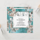 A beautiful square frame is edged with delicate watercolor roses in shades of pale white and dusty pink which form a border around black templates and faux sparkling glitter sequins; balloons and jewel strands set on a shimmer turquoise blue and white background. The corners have delicate faux silver flourish swirls and a faux silver crown with diamond gem inlays appears along the top edge. Delicate fern leaves bring softness to this elegant and chic shabby french chic look. Ideal for a bridal shower; birthday party or special wedding anniversary celebration.