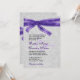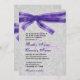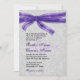 This design with its faux purple satin bow and its silver grey grunge damask background makes an elegant wedding invitation. I recommend the ice hued metallic paper paper which gives your invitation a special shimmer and shine.You can experiment with different paper types to get just the look you want. If you want a glossy finish (which is only applied to the front side of your invitation) choose the linen, basic or metallic papers. If you want a matte finish, choose the specked, felt, or recycled. This invitation comes with an A7 sized envelope.