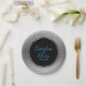 Silver Damask Black Circle With Silver Ring Paper Plate