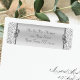 The silver background is edged on each side with glitter damask on these trendy wedding return address labels. The name and address is written in a clean elegant script font.
