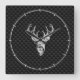 Silver Deer on Black Carbon Fibre Style Print Square Wall Clock