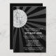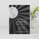 A unique disco themed Bat Mitzvah invitation. Featuring a silver disco ball on a black background. Modern and trendy -- Easily customise for your event!