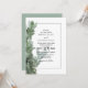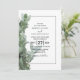 This design features silver dollar eucalyptus leaves and branches. The beautiful greenery of the eucalyptus leaves compliment the elegant black modern thin border surrounding the wedding wording. A perfect fusion of modern and chic with eucalyptus silver green colour tones. Silver green, black and white are a perfect match for a rustic greenery themed wedding. Unique wedding invitation design with modern elements. Matching wedding stationery items and other wedding invite formats are also available.