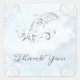 Seal your thank you cards with this elegant Silver Dolphin wedding thank you sticker. Sticker design features a metallic styled dolphin against a muted ocean waves background adorned with elegant scrolls. Additional wedding stationery, wedding supplies, and party favours available with this design as well.