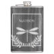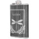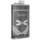 Enjoy your favourite alcoholic beverages anytime with a Silver Dragonfly Rustic Vinyl Wrapped Flask. Flask design features a vibrant dragonfly adorned with delicate foliage against a dark grey rustic wooden background. Additional gift items available with this design as well.