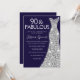 Silver Dress Navy 90 & Fabulous 90th Birthday Invitation