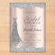 Elegant chic sparkle border, and silver diamonds dress on rose gold background. The design is easy to personalise with your own wording and your guests will be thrilled when they see these fabulous invitation.
