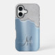 Silver Drips Monogram Blue Metallic iPhone 16 Case