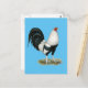 Silver duckwing roosters are resplendent chickens in glossy black and white. Duckwing fowl are named for the blue-black wing bar, like a mallard's wing. Commissioned by Kenny Troiano for his book on game fowl colours.