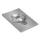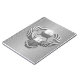 Silver Egyptian art based on the hieroglyph of the scarab, traditionally a good luck symbol. With a brushed metal texture background.
