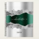 Faux silver and emerald green agate, marble stone print as background Personalise and add your name. The name is written with a modern hand lettered style script.