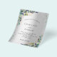 Faux silver looking background decorated with eucalyptus greenery, golden foliage and silver and green faux glitter, sparkles. Personalise and add your names and wedding details. Black letters.