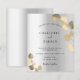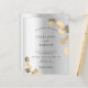 A modern, elegant and minimalist wedding invitation. Faux silver metallic looking background decorated with golden eucalyptus, sprigs. Personalise and add your names and wedding details. Black coloured letters.