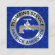 A blue bubbles water cover features a circular silver faucet design. Over at the top lies the business name "PLUMBING SERVICE" which you can change alongside your prestigious name at the base.
