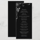 This dramatic black and silver wedding program card matches the Black Silver Faux Diamond Heart Swirl Wedding Invitations in our store, but can easily be adapted to fit a variety of events. It features pretty faux diamond swirl images which create an elegant border. The swirls form leaf and heart images in glittery silver with your program text in the middle. All of the text is easily customised, and you may use Customise It to make changes in font, size, and location. The back of the card is solid black. Please note - the image is printed, and does not contain glitter. *Clip art used in this design is copyrighted by Encore Software, Inc., which permits use to its licensors. All rights reserved.
