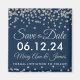 Elegant wedding "Save The Date" design with Silver Faux Glitter Confetti Navy Blue , and custom names and date text.