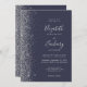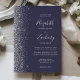 Silver Faux Glitter Edge Dark Blue Wedding Invitation