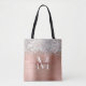 This chic tote bag features Brown brushed metal background with sparkling silver Faux-Glitter border. Add your name and initial for a personal touch.