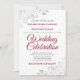 Invite your guests to share in your wedding celebration with these chic elegant invitations. Features red and grey elegant script text on a white background with silver floral faux foil filigree in the corners. Simple design with formal wording to make your wedding truly special.