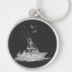Silver Fishing Boat on Carbon Fibre Key Ring