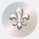 Silver Fleur de Lis on Pearl Classic Round Sticker