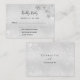 A faux silver metallic looking background, decorated with sparkling faux glitter and florals. Personalise and add the reply by date and your names.