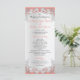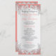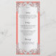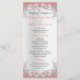 Custom silver floral lace like design with coral background or change colour as prefered. Customise with wedding details, ceremony information, menu or any text on this two sided card.