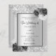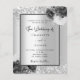 Faux silver looking background decorated with florals, flowers and faux silver glitter, sparkles. Personalise and add your names and wedding details. Black letters.