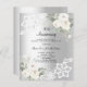 For an elegant and romantic 10th wedding anniversary. A faux silver looking background decorated with white florals, roses and white lace. Personalise and add your names and details.