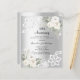 For an elegant and romantic 60th wedding anniversary. A faux silver looking background decorated with white florals, roses and white lace. Personalise and add your names and details.