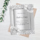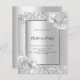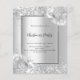 Faux silver looking background decorated with florals, flowers and faux silver glitter, sparkles. Personalise and add your party details. Black letters.