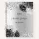 Faux silver looking background decorated with florals, flowers, and faux silver glitter, sparkles. Personalise and a year, name and a title/text