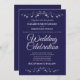 Silver Flourish Navy Blue Simple Elegant Wedding Invitation