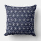 Throw pillow with beautiful silver flower circles on blue background. This design is known as the flower of life and it is revered by major religions and many cultures. it means we all are interconnected.