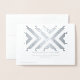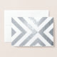 Stylish geometric thank you card features alternating silver foil and white chevrons which converge. Easily customise the message for any occasion.