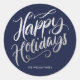 Silver Foil Calligraphic Happy Holidays Custom Classic Round Sticker