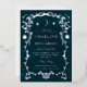 Make a bold statement with this celestial gothic wedding invitation. Featuring a deep indigo background with intricate silver foil details, including swords, stars, and moon accents, this design blends elegance with a dramatic, magical touch. The back includes a customisable photo option, creating a unique keepsake for your guests. Perfect for celestial, fantasy, or evening weddings.