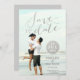 Printed Photo Effect Silver Foil Glamour Handwriting | Photo Save the Date Card. Elke Clarke© Available at www.zazzle.com/monogramgallery. Modern minimalist photo overlay design with the words "Save the Date" in silver handwriting script. A silver dot for the wedding date and silver grey text for the bride and groom names and wedding announcement information text. Silver foil is a printed photo effect. Other colours available in or shop.