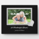 This Silver Wedding Anniversary photo plaque features your photograph within a pretty silver frame. There's a silver heart at the right corner, and the image and text are placed on a dramatic black background. The text, also in silver, is fully customisable, so you may make it say whatever you'd like. You can even remove the 25 Years and make it for any anniversary celebration, or even for a wedding photo. You may use Customise It and the arrow keys to move your photograph into the best position.
