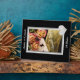 A pretty silver coloured frame holds your photograph on this personalised Silver Wedding Anniversary photo plaque. A silver heart is at the bottom right. The text, also in silver, is fully customisable, so you may make it say whatever you'd like. You can even remove the 25 Years and make it for any anniversary celebration, or even for a wedding photo. Everything is placed on a dramatic black background. Choose Customise it and use the arrow keys to move your photograph into the best position.