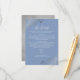 This beautiful enclosure card is designed to provide your guests with additional information on the reception, accommodations, travel arrangements, registry, website, directions, or any other specifics that your guests might require. Features a simply yet elegant light blue and grey design with a lacy script title, and frilly silver faux foil curls and swirls in the corners.