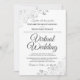 Just because you've been forced to move your wedding to a virtual ceremony, doesn't mean you can't send out beautiful invitations. This elegant invite features fancy grey script lettering on a white background with lacy silver faux foil floral filigree or curls and swirls in the corners. Perfect way to invite your friends and family to share in your special day, even if they can't be there in person.