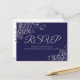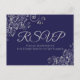 Silver Frills Elegant Navy Blue Wedding RSVP Postcard