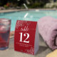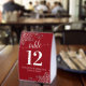 These beautiful table tent signs will make it easy for your guests to find their tables at your wedding reception. The elegant red design features lacy script calligraphy with ornate floral curls and swirls in the corners. There is space for the names of the couple and the wedding date.